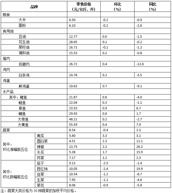 商务预报:1月26日-2月1日36个大中城市食用农产品零售价格情况