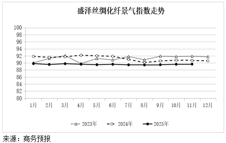 2025年11月份盛泽丝绸化纤景气指数为89.66点,上涨0.1%。其中,化纤类景气指数88.61点,上涨0.1%;丝绸类景气指数100.35点,与上月持平。