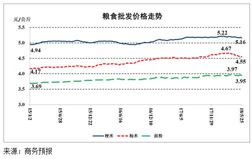 据商务部监测,上周(5月21日至27日)全国食用农产品市场价格指数比前一周上涨0.3%,生产资料市场价格指数与前一周基本持平。