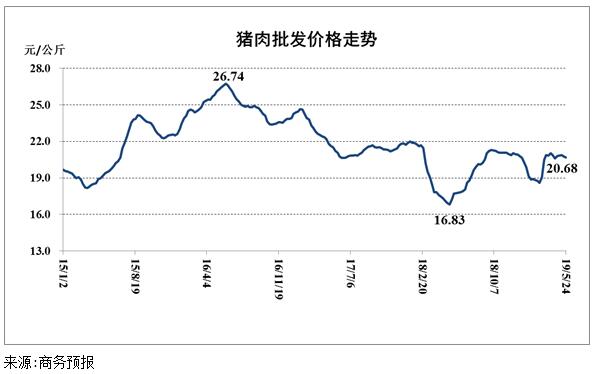 三、猪肉价格环比上涨。鲜猪肉平均零售价格为23.9元/公斤,环比上涨6.03%;精瘦肉平均零售价格29.63元/公斤,环比上涨0.47%。上周我市猪肉价格小幅回落之后再次上涨,依旧呈现阶梯式上涨态势。市场目前呈现出猪肉供应偏紧,省间点对点调运增加,需求端来看:6月份形势不好气温增加,将进一步抑制消费的提升。目前非洲猪瘟候选疫苗研发成功的消息振奋人心,养殖户大多数看涨后期猪肉价格,纷纷出栏推迟,这样将会增加生猪未来的出栏体重,一定程度弥补疫情损失带来的供应缺口。因此预计下周我市猪肉价格将稳中趋涨。