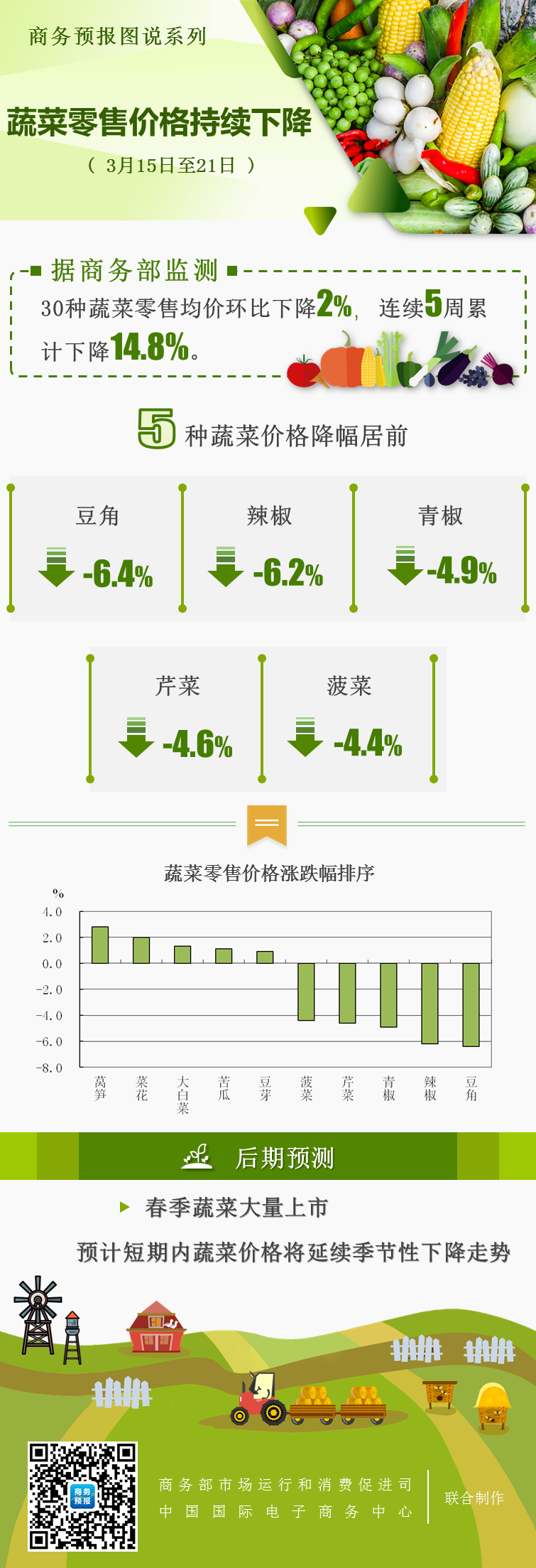 图解全国蔬菜零售价格持续下降(2021年3月15日至21日)