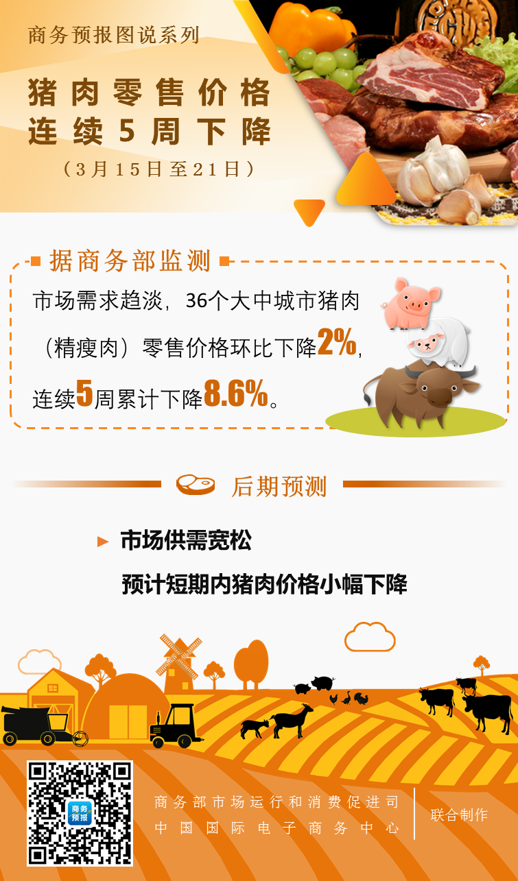 图解全国猪肉零售价格连续5周下降(2021年3月15日至21日)