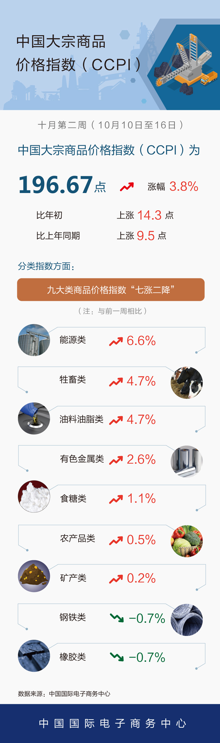 中国大宗商品价格指数十月第二周(10月10日至16日)