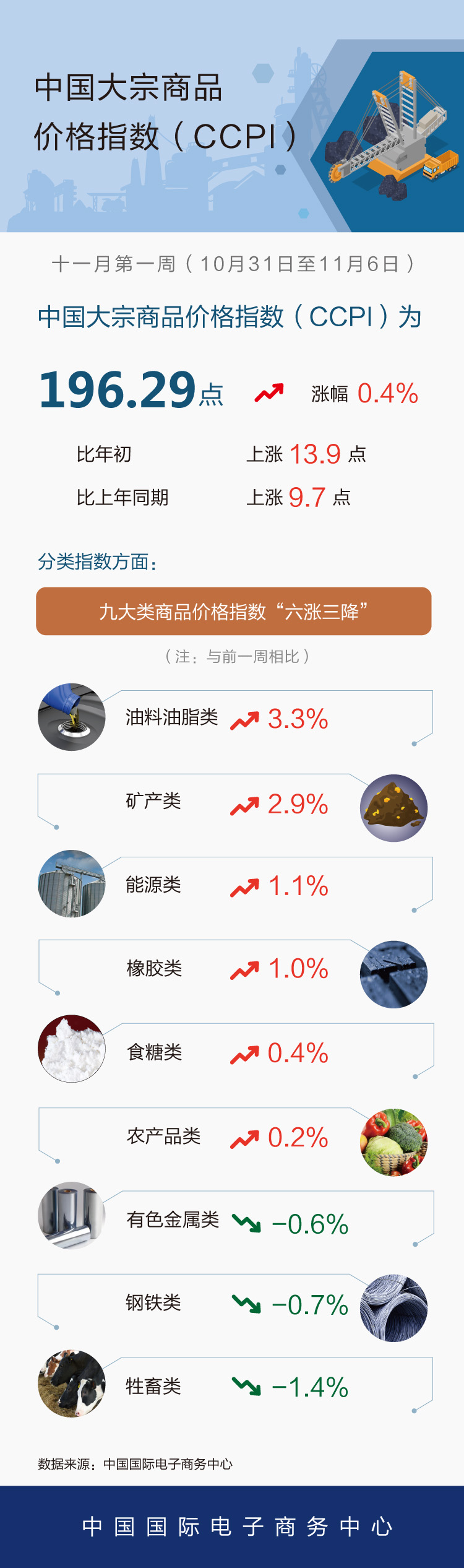 中国大宗商品价格指数十一月第一周(10月31日至11月6日)