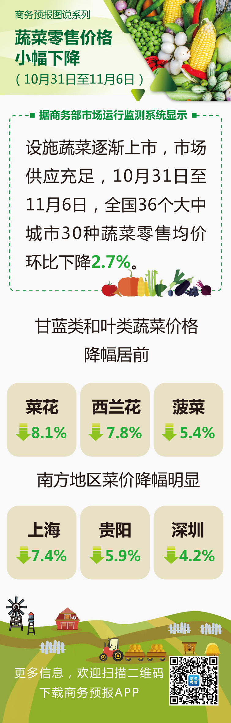 图解全国蔬菜零售价格小幅下降(2022年10月31日至11月6日)