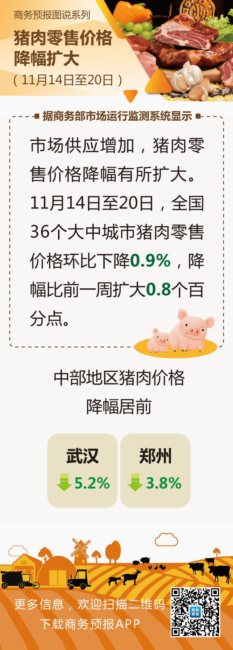 图解全国猪肉零售价格降幅扩大(2022年11月14日至20日)