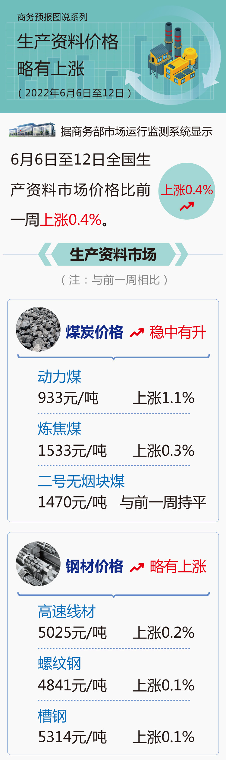 图解全国生产资料市场价格(2022年6月6日至12日)