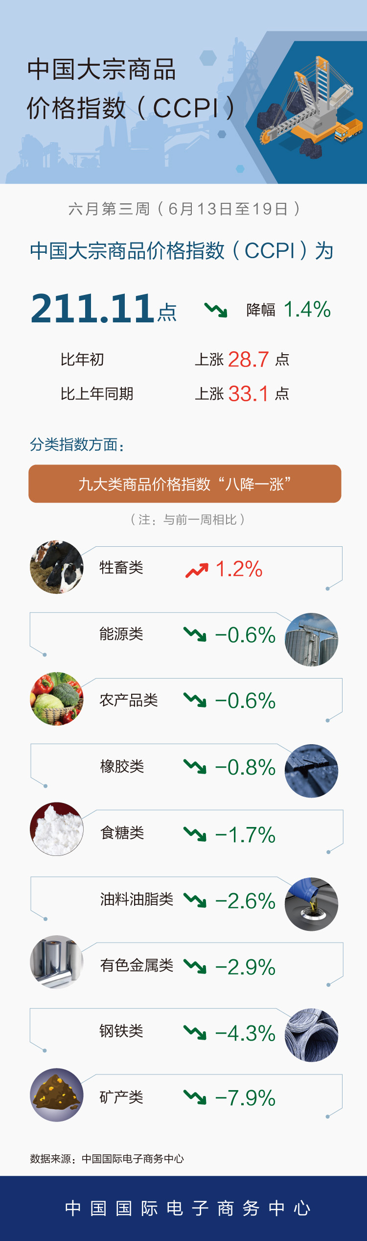 中国大宗商品价格指数六月第三周(6月13日至19日)