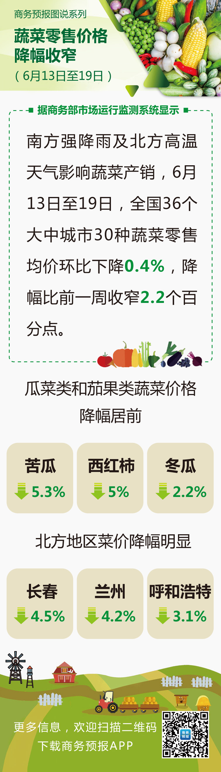 图解全国蔬菜零售价格降幅收窄(2022年6月13日至19日)