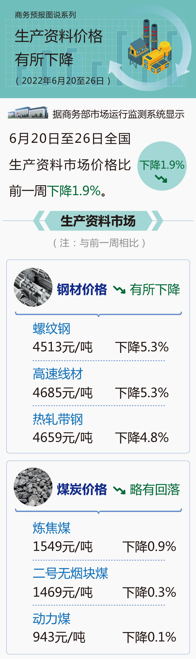 图解全国生产资料市场价格(2022年6月20日至26日)