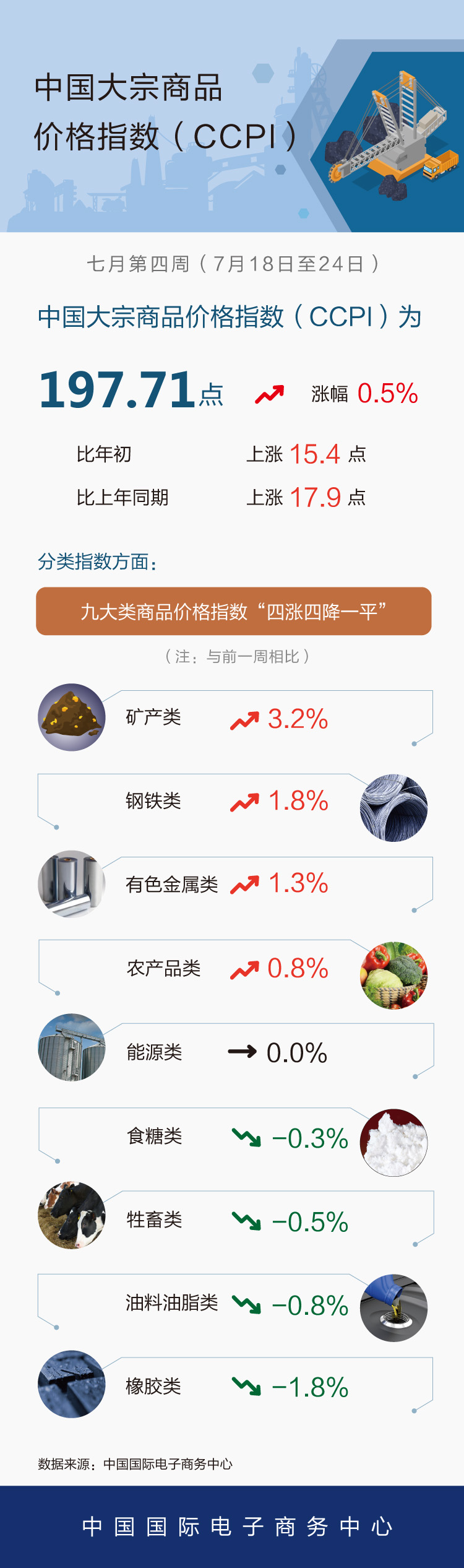 中国大宗商品价格指数七月第四周(7月18日至24日)