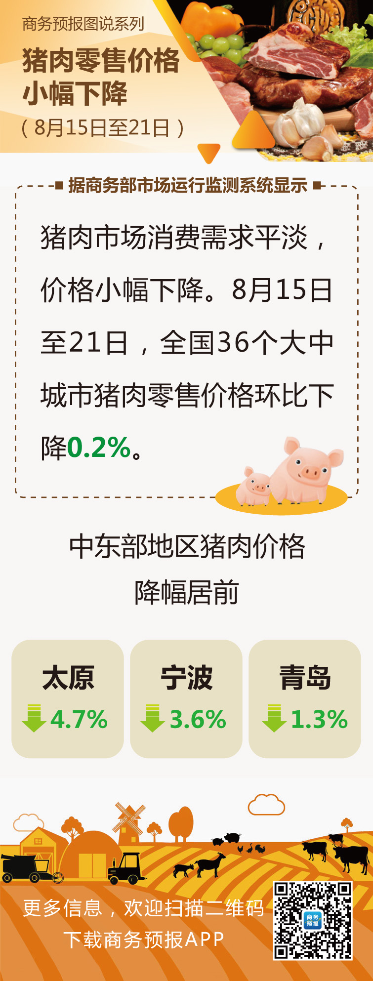 图解全国猪肉零售价格小幅下降(2022年8月15日至21日)