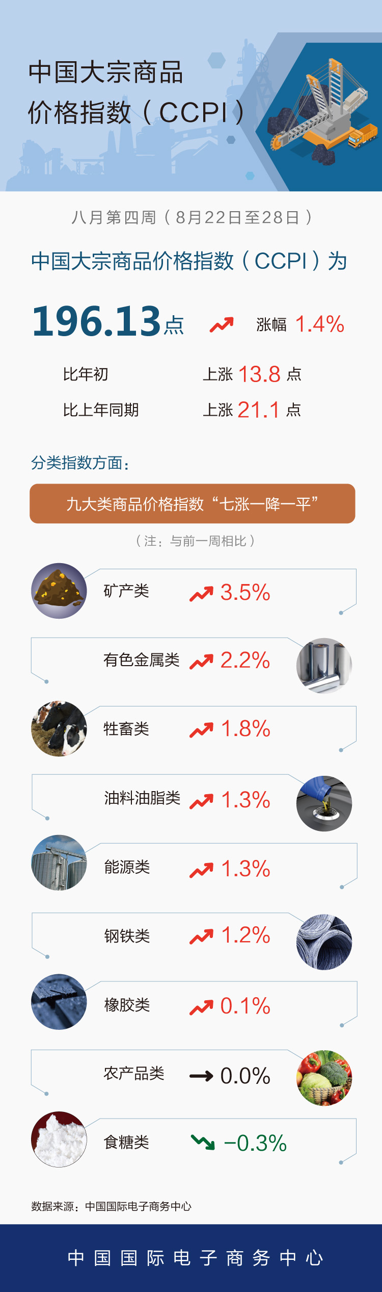 中国大宗商品价格指数八月第四周(8月22日至28日)