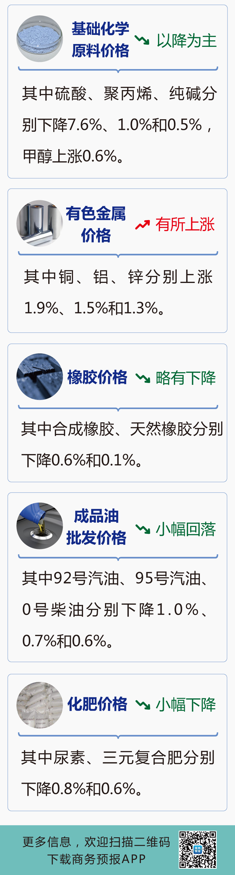 1、凡本站及其子站注明"信息来源:商务部市场运行和消费促进司”的所有作品,其版权属于商务预报所有。其他媒体、网站或个人转载使用时不要断章取义,并请同时注明:"信息来源:商务预报”。