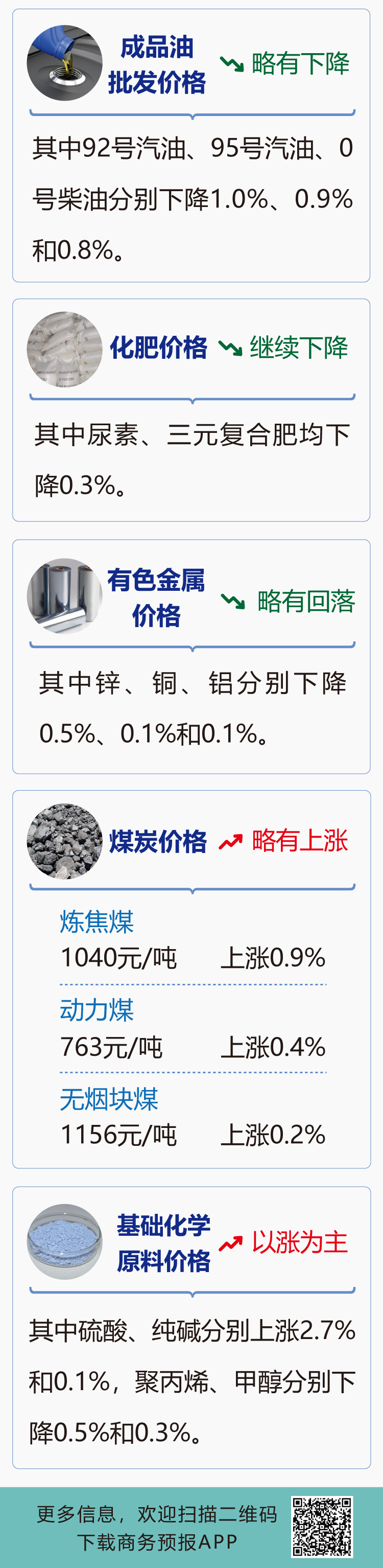 1、凡本站及其子站注明"信息来源:商务部市场运行和消费促进司”的所有作品,其版权属于商务预报所有。其他媒体、网站或个人转载使用时不要断章取义,并请同时注明:"信息来源:商务预报”。