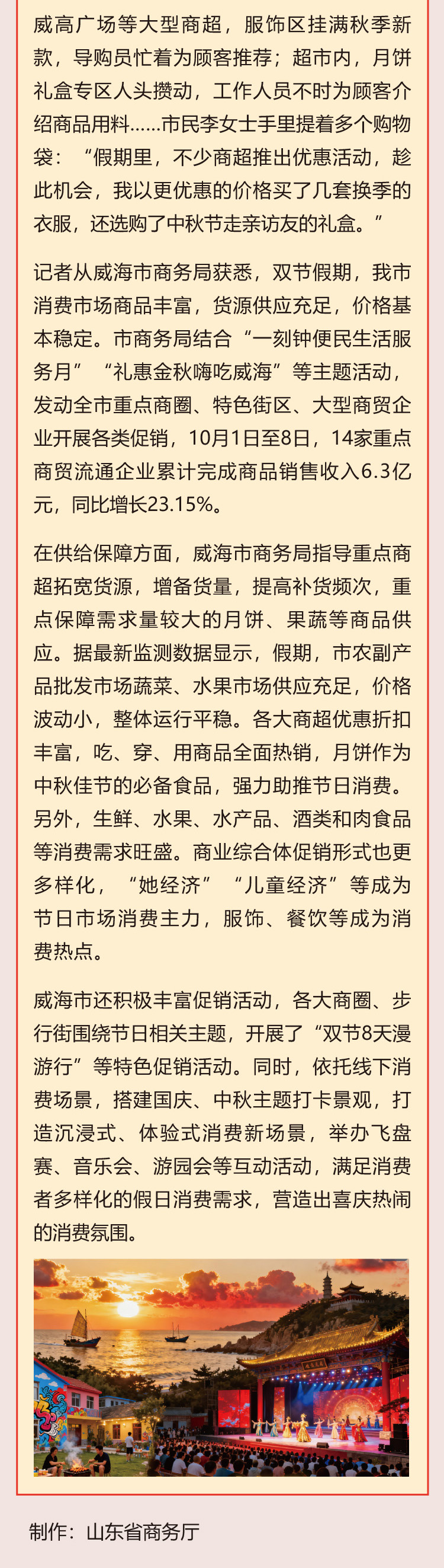 1、凡本站及其子站注明"信息来源:商务部市场运行和消费促进司”的所有作品,其版权属于商务预报所有。其他媒体、网站或个人转载使用时不要断章取义,并请同时注明:"信息来源:商务预报”。