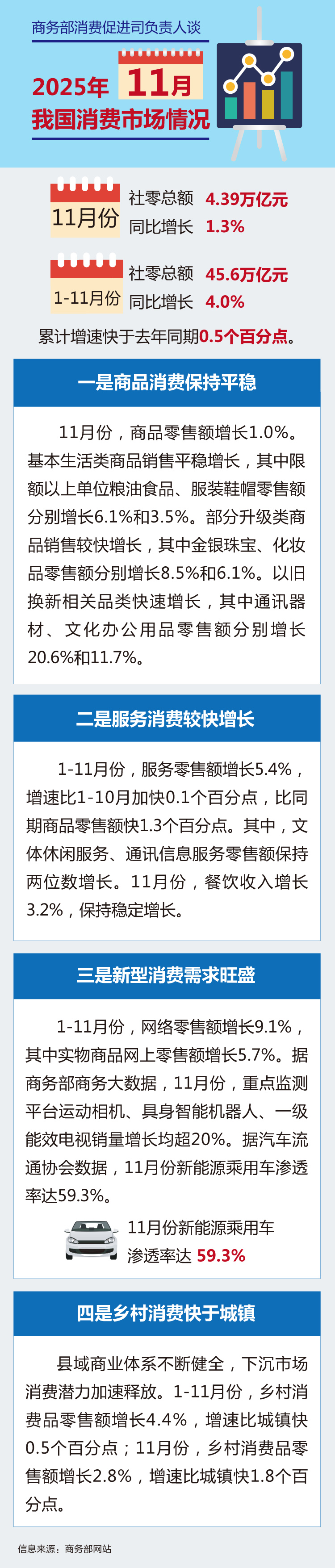 商务部消费促进司负责人谈2025年11月我国消费市场情况