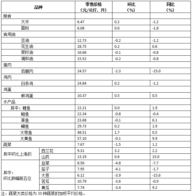 商务预报:3月30日-4月5日36个大中城市食用农产品零售价格情况